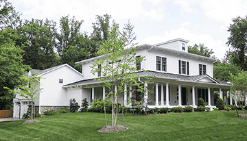 The Bryson Model shown in the photographs is located on Melody Lane in Vienna, VA. This corner lot could accomodate the three-car, side-load garage.